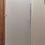 Cabinel / Lemari Bawah Tangga terintegrasi dengan bahan material ACP (Aluminium Composite PAnel) dengan putih yang fungsional dan memparcantik rumah Anda. Anti Air. Tahan Rayap.