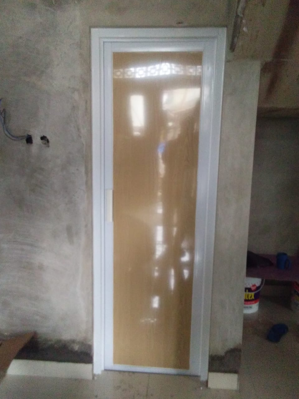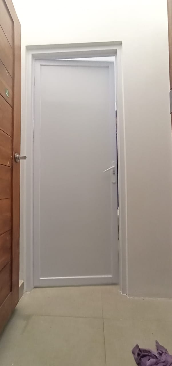Pintu dengan bahan material ACP (Aluminium Composite PAnel) dengan putih yang fungsional dan memparcantik rumah Anda.