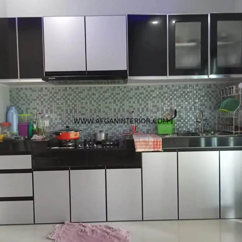 AFGAN Interior memberikan jasa pembuat dapur aluminium custom. Sesuai ukuran dan desain dapur Anda. Pilihan warna dan desain bisa menyesuaikan sesuai dapur yang telah ada.