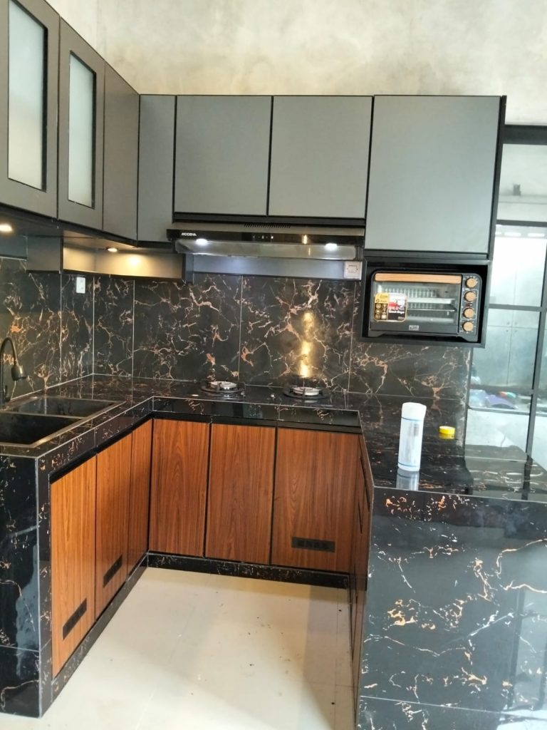 Bagi ibu rumah tangga atau pekerja sibuk, kemudahan perawatan adalah segalanya dalam sebuah hunian. Kabinet kayu seringkali meninggalkan noda minyak yang sulit dibersihkan dan meresap ke dalam pori-pori.